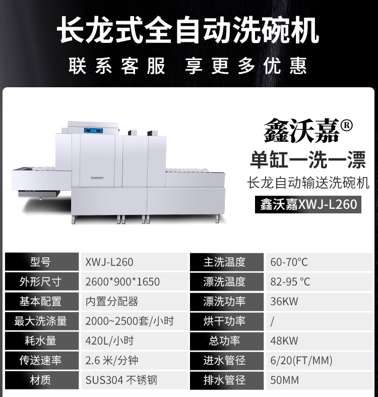 长龙式洗碗机(两主洗+两漂洗+两烘干+带除渣)